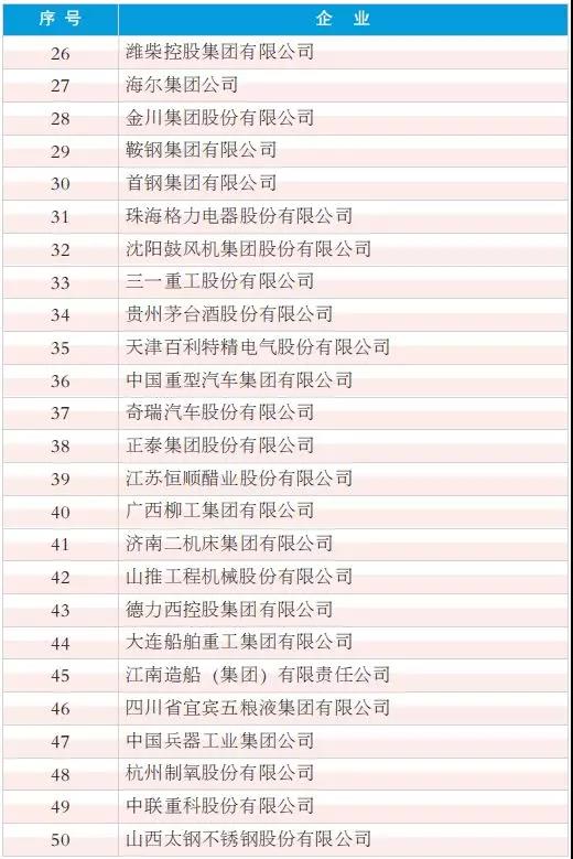 2018年度中國工業(yè)影響力品牌(排名不分先后)