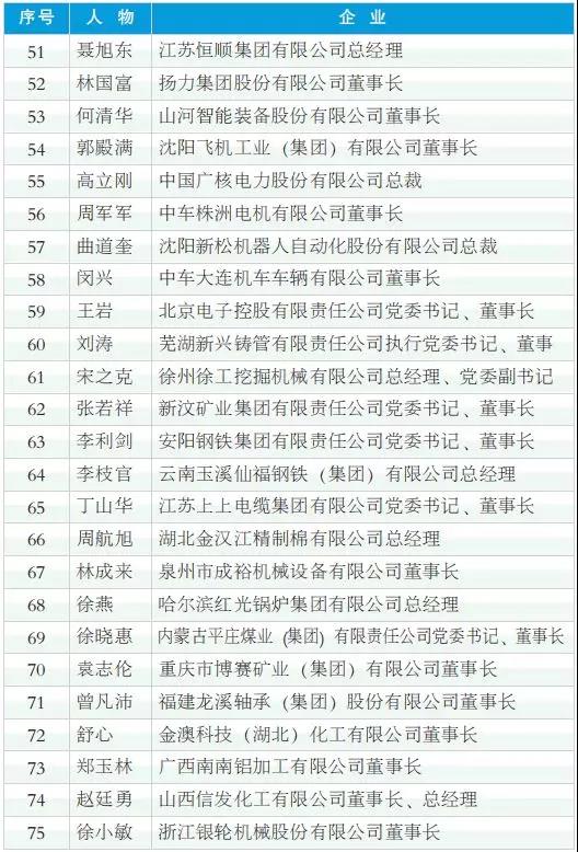2018年度中國工業(yè)影響力人物(排名不分先后)
